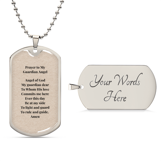 Prayer to My Guardian Angel Personalized Dog Tag Necklace (Stainless Steel or 18K Gold Finish)