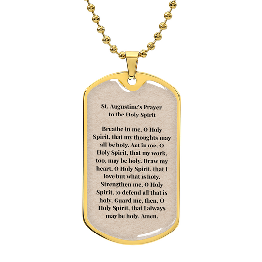St. Augustine's Prayer to the Holy Spirit Personalized Dog Tag Necklace (Stainless Steel or 18K Gold Finish)