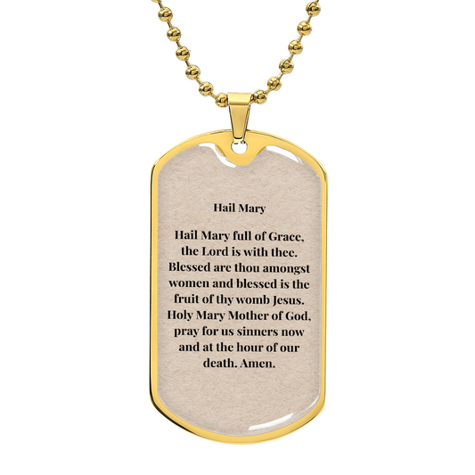 Hail Mary Personalized Dog Tag Necklace (Stainless Steel or 18K Gold Finish)