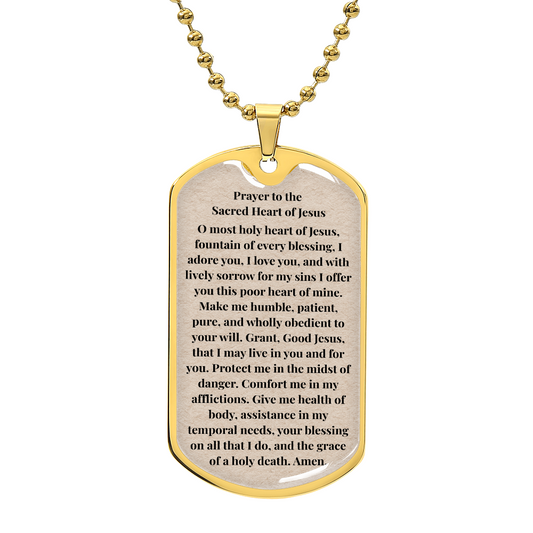 Prayer to the Sacred Heart of Jesus Personalized Dog Tag Necklace (Stainless Steel or 18K Gold Finish)