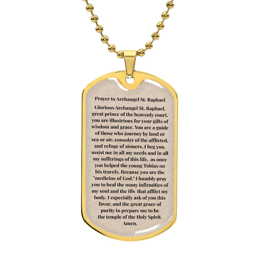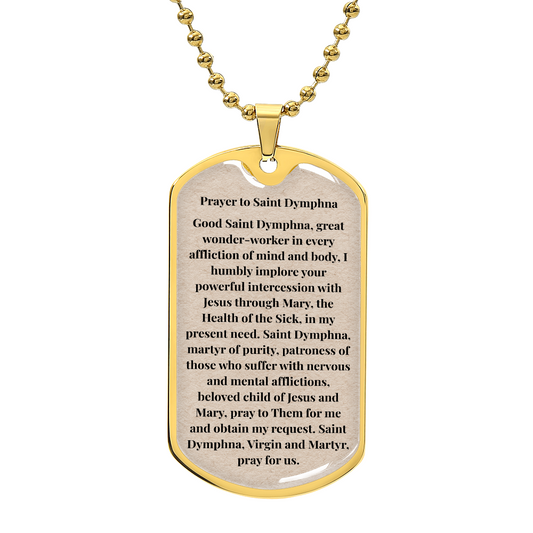 Prayer to Saint Dymphna Personalized Dog Tag Necklace (Stainless Steel or 18K Gold Finish)