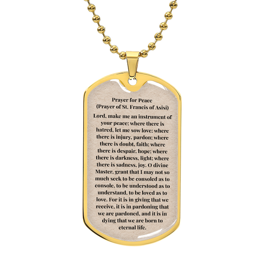 Prayer for Peace by Saint Francis of Asisi Personalized Dog Tag Necklace (Stainless Steel or 18K Gold Finish)
