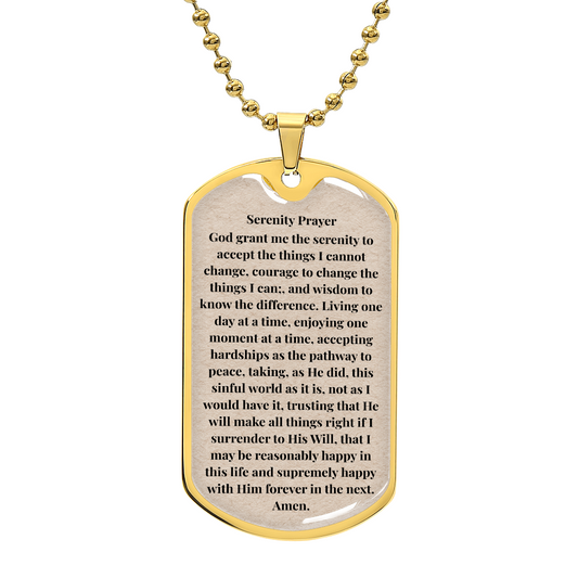 Serenity Prayer Personalized Dog Tag Necklace (Stainless Steel or 18K Gold Finish)