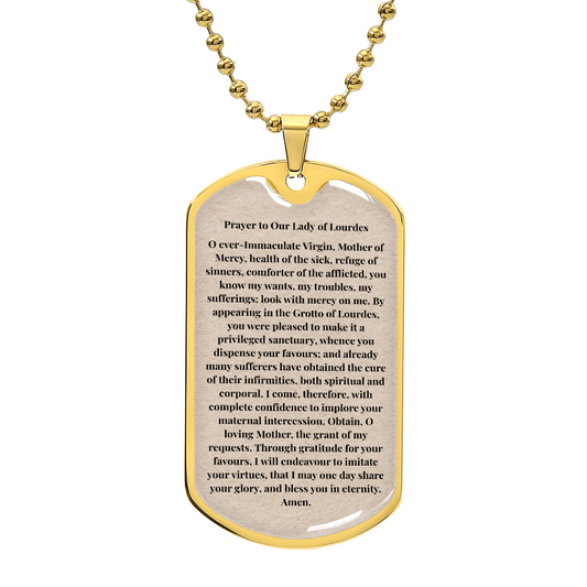 Prayer to Our Lady of Lourdes Personalized Dog Tag Necklace (Stainless Steel or 18K Gold Finish)