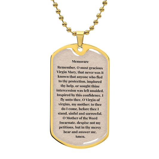 Memorare Personalized Dog Tag Necklace (Stainless Steel or 18K Gold Finish)