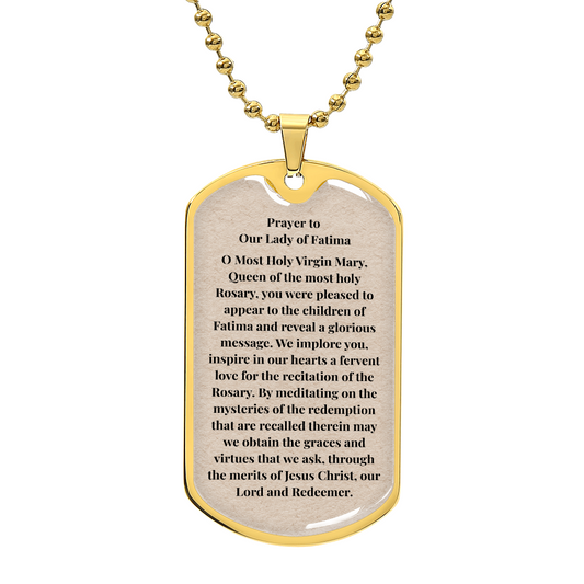 Prayer to Our Lady of Fatima Personalized Dog Tag Necklace (Stainless Steel or 18K Gold Finish)